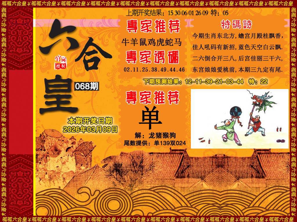 068期⑤肖【猪鸡猴龙马】开 ?? 准