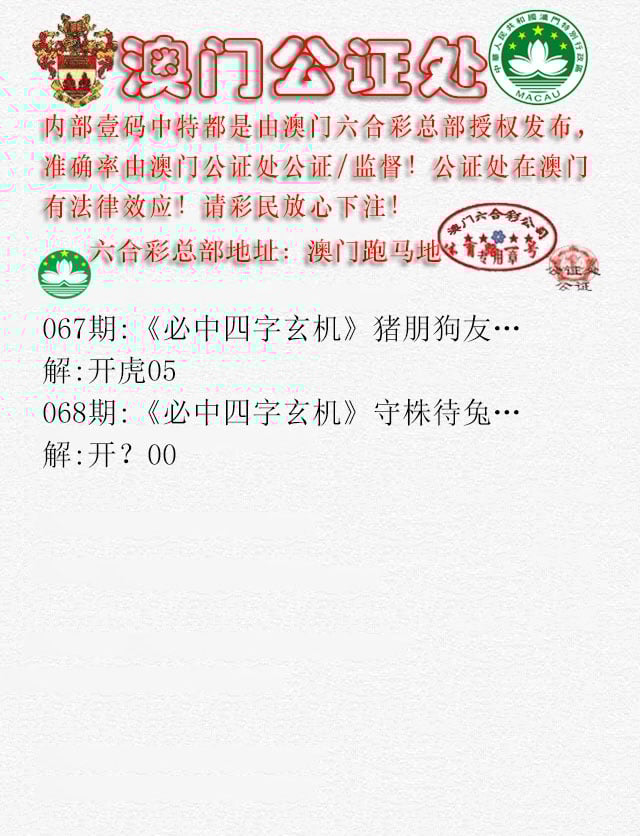 068期本期特围:【狗鸡马猪】开 ?? 准